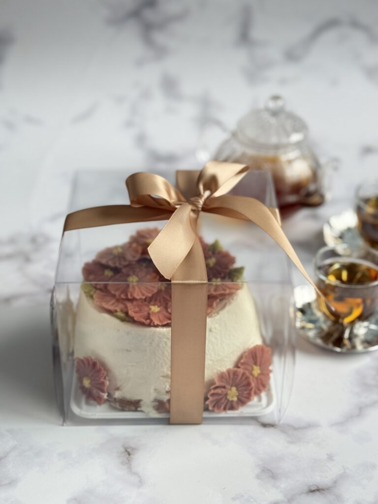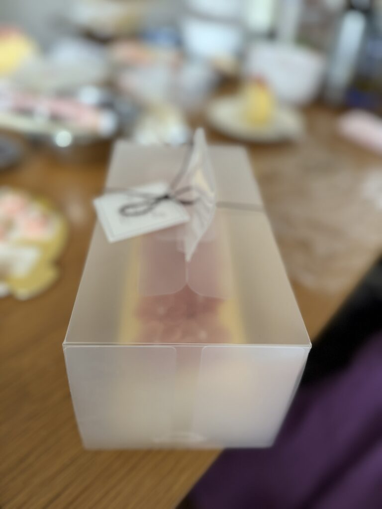 華やかな**デコレーション**を施す「華れの日シフォン」の時は、また違う箱を使用しています。それは…**きれいにデコレーションした外見が見えてほしい!**から。👀✨