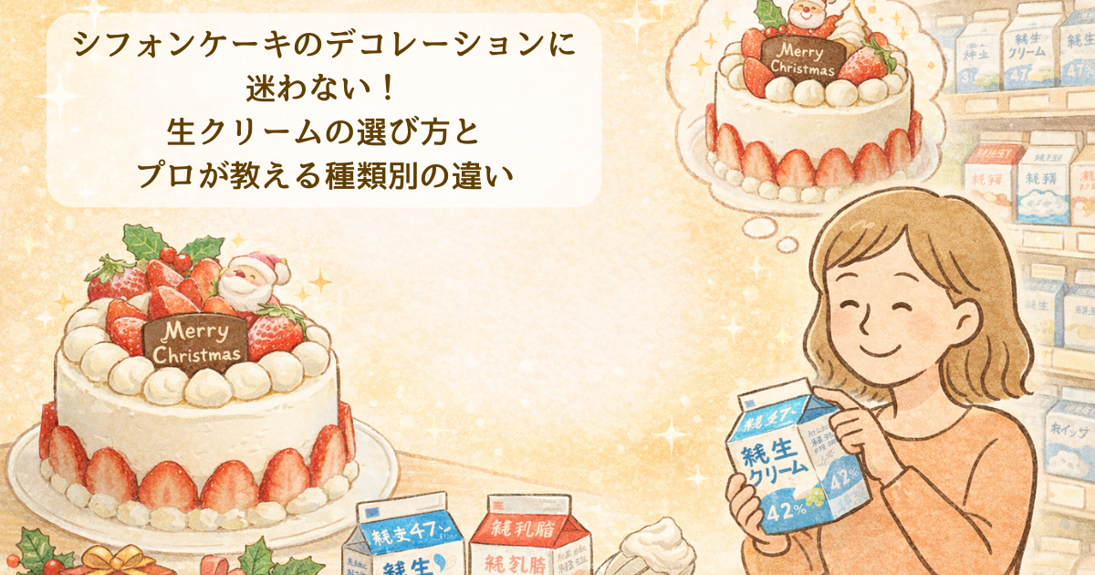 👉【プロ直伝】シフォンケーキのデコレーションに最適!家庭用生クリームブレンドの黄金比と絞りのコツ