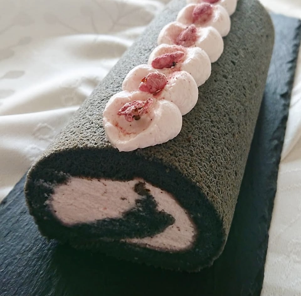 アレンジして米粉の「夜桜シフォンロール」に仕立てました。
